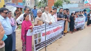 কুলাউড়া প্রতিনিধি: মৌলভীবাজারের কুলাউড়া উপজেলার কর্মধা ইউনিয়নের ইছাছড়া খাসিয়া পুঞ্জিতে এক আদিবাসী দম্পতির ১,২০০-এর বেশি পরিপক্ব পানগাছ কেটে ফেলার ঘটনায় এলাকায় তীব্র ক্ষোভ ও উত্তেজনা ছড়িয়ে পড়েছে। এ ঘটনার প্রতিবাদে এবং জড়িতদের গ্রেফতারের দাবিতে বৃহস্পতিবার কুলাউড়া শহরে মানববন্ধন ও বিক্ষোভ কর্মসূচি অনুষ্ঠিত হয়েছে।